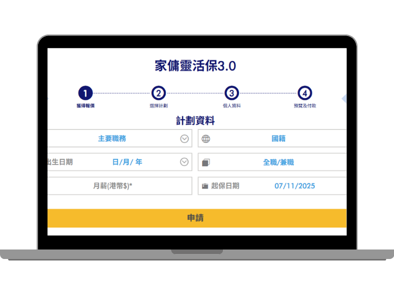 填寫相關資料,例如職務、國籍、出日生期及月薪等索取報價。