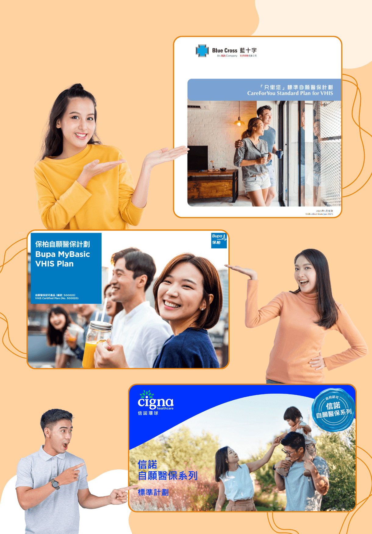 我們提供多間保險公司的自願醫保(VHIS)計劃,包括: