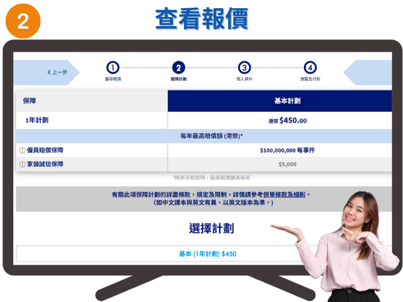 當您按下「申請」後,系統將會為您顯示相應的報價。請注意,此時尚未完成投保申請,僅為報價確認階段。