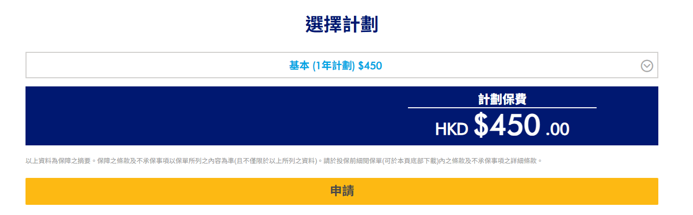如確認無誤,請選擇所需計劃的年期,並點擊「申請」以完成投保。